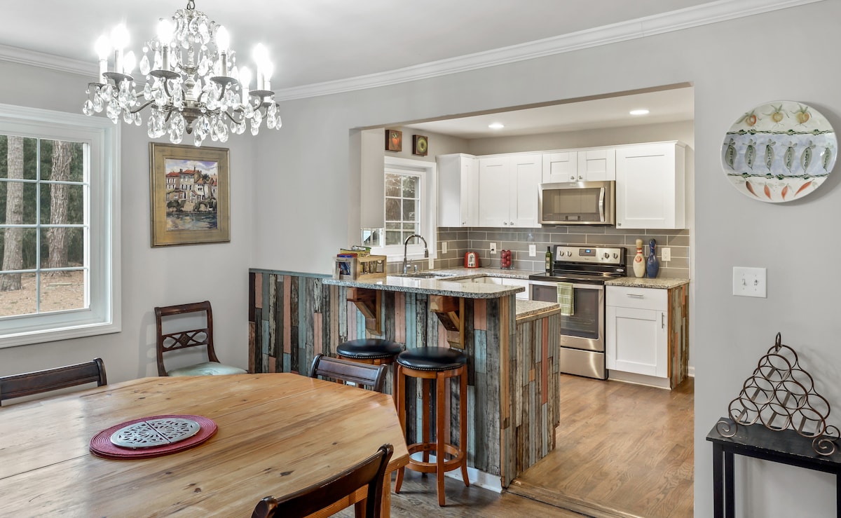 Granero rústico recién renovado, en 1,3 acres de una granja de la posguerra civil. Ubicado a 1 milla de Canton Street en el histórico Roswell. 2 dormitorios con camas tamaño queen. Loft abierto con 2 camas individuales. 2 baños completos, toallas, artículos de aseo, cocina completa con lavavajillas, microondas, estufa, nevera cafetera, platos y cubiertos ollas y sartenes, tablas de cortar lavadora, secadora wifi Calefacción central y aire acondicionado Smart TV por cable. Mantas adicionales Brasero exterior Entrada con teclado 3 plazas de aparcamiento para los huéspedes