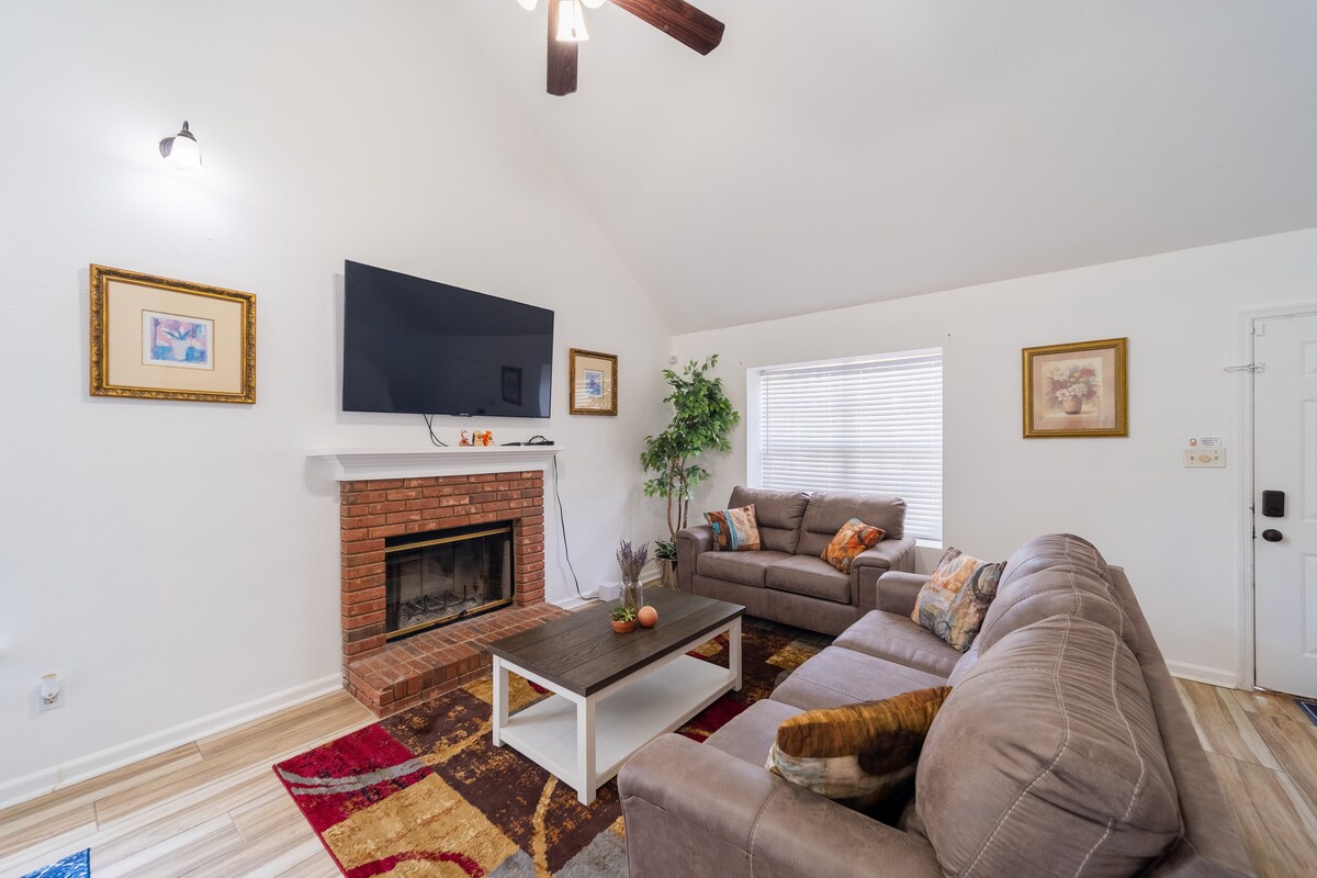Disfruta de una escapada en esta casa adosada limpia y moderna, convenientemente ubicada. Con 2 dormitorios: uno con una cama tamaño king y otro con 2 camas tamaño queen. Cada dormitorio tiene un televisor inteligente Roku. La cocina para comer cuenta con una cafetería y una selección de té, mesa de comedor para 4 y 3 taburetes. Estacionamiento reservado para 2 autos. A 10 minutos a pie del estadio Doak. También está cerca del centro, el centro de convenciones, restaurantes, el aeropuerto, Collegetown y todos los campus. ¡Ven a ser nuestro huésped! (NO FUMAR en el interior)
