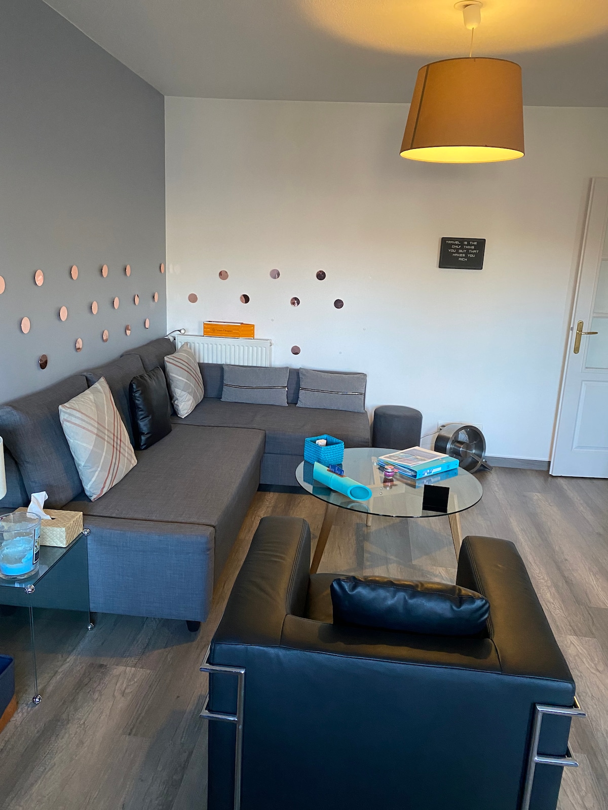 Apartamento muy cómodo de 67 m, a 15 minutos de Ginebra en coche y a 25 minutos en autobús (línea D), la parada de autobús está a 5 minutos a pie. Es perfecto para todo tipo de viajeros (familias con hijos, parejas, viajeros solteros, viajeros de negocios...). El apartamento cuenta con todos los equipos necesarios para una estancia cómoda. Si tienes alguna pregunta, estoy listo para responderla con mucho gusto en inglés, francés o ruso.
