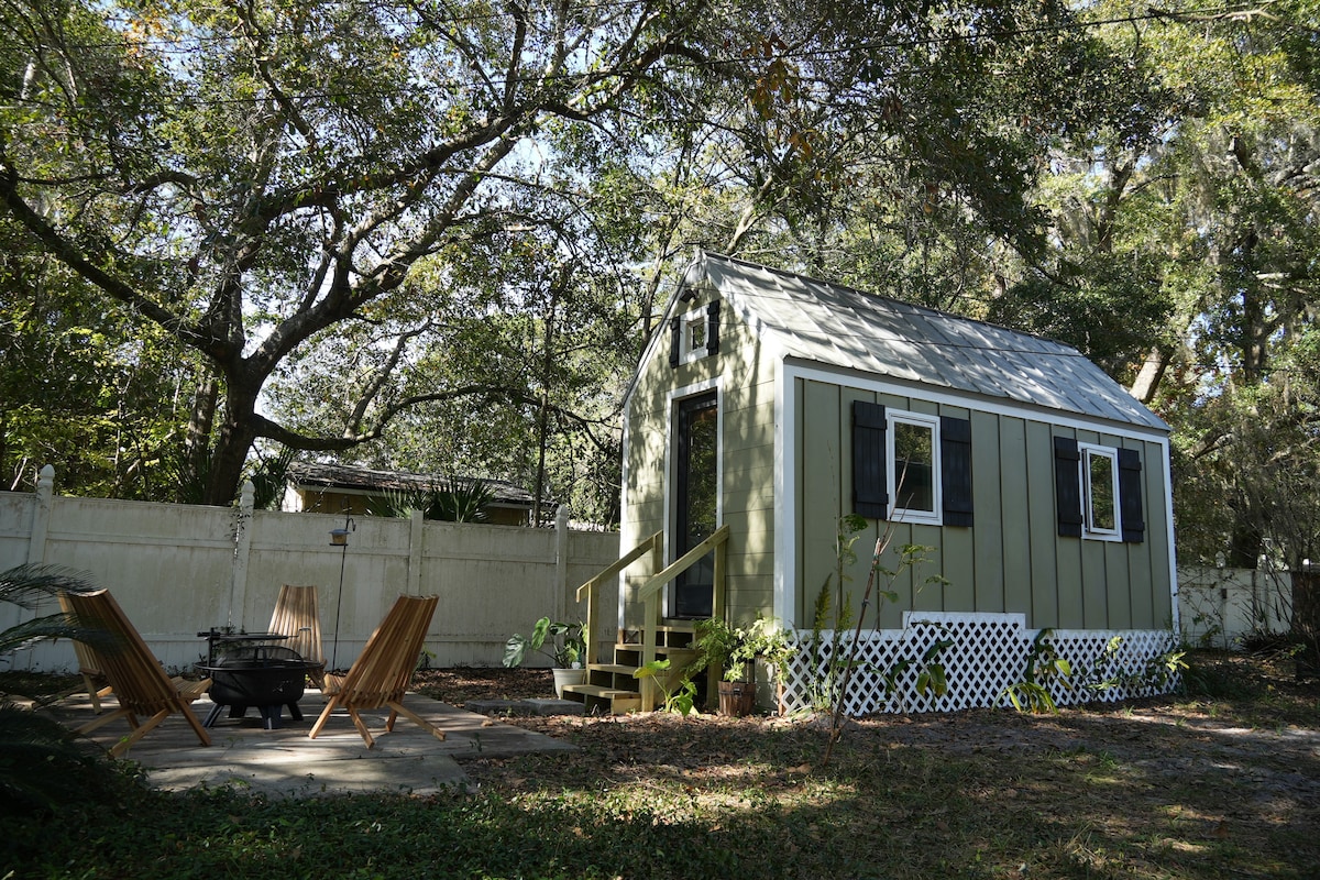 CHAI TINY HOME en Alachua Forest Sanctuary 🌴 Ubicada en un oasis natural. Disfruta de un retiro tranquilo. 🚙 Muy cerca para los huéspedes que visitan el Templo del Universo de Michael Singer (a aproximadamente 1 milla de distancia). A 💦 25-45 minutos en coche de varios manantiales naturales de agua dulce impresionantes. A 25 minutos de UF o del centro de Gainesville. A 15 minutos de las tiendas. 🐄 Ten en cuenta que el espacio y la tierra son vegetarianos. Por favor, mantén una dieta vegetariana cuando estés en la tierra, ¡gracias! ¿🌝 Chai reservado para tus fechas? Envía un mensaje al anfitrión o consulta Shanti Tiny Home.