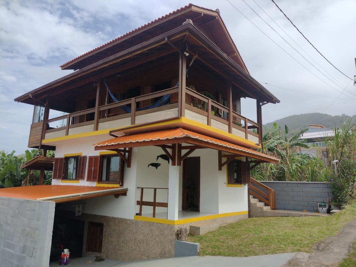 La casa tiene 2 dormitorios (con una pared divisoria, cerrada con una cortina de voal), ventilador portátil, sofá rústico con minibar y baño privado. No hay cocina en el alojamiento, pero los huéspedes pueden utilizar la cocina compartida de la posada (mostrada en las fotos), así como la sala de estar, el comedor y el balcón con vistas al mar. La posada tiene 4 alojamientos en total. Está en la cima de la colina con hermosas vistas al mar. Ubicación (Praia do Siriú) - 1,3 km del mar de Praia do Siriú - 9 km del centro de Garopaba