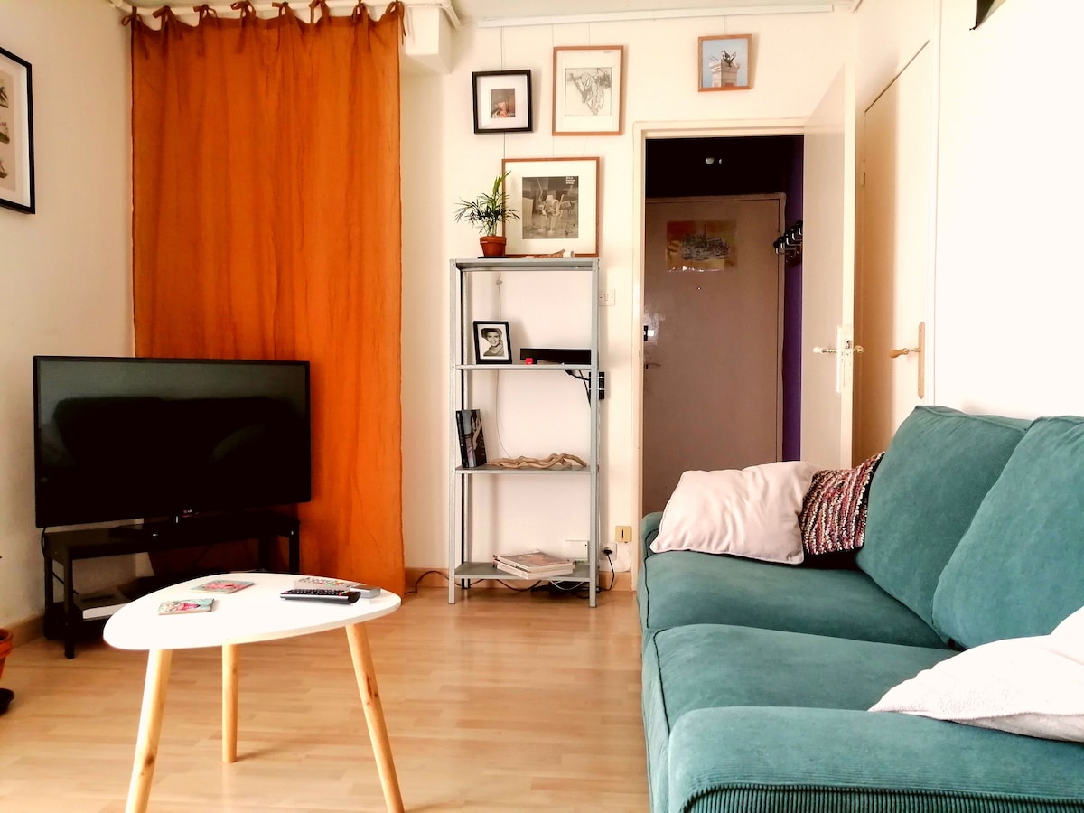 Alojamiento de 20 m2 renovado, con aire acondicionado y totalmente equipado. Es cómodo, tranquilo y luminoso. En los días soleados, disfrutará de su terraza privada y sin vecinos. Es adecuado para una persona o una pareja con un bebé. Se puede estacionar de forma gratuita en la calle. Cancelación gratuita hasta 5 días antes de la llegada. La semana las llegadas se funden a partir de las 17:00 y las salidas a las 11:00. Y los fines de semana a partir de las 14:00 y salidas a las 11:00.
