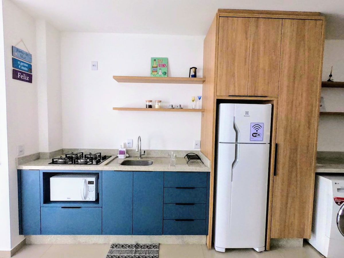 Estarás cerca de todo al quedarte en este apto: supermercados, bares, restaurantes y otros servicios a una cuadra. Condominio con piscina, salón, espacio gourmet y cancha de arena polideportiva. Loft (dormitorio/sala de estar/cocina) muy bien equipado con una cama queen y una cama individual auxiliar incorporada. Con muebles nuevos y planificados, nevera, estufa, microondas y utensilios básicos de cocina.