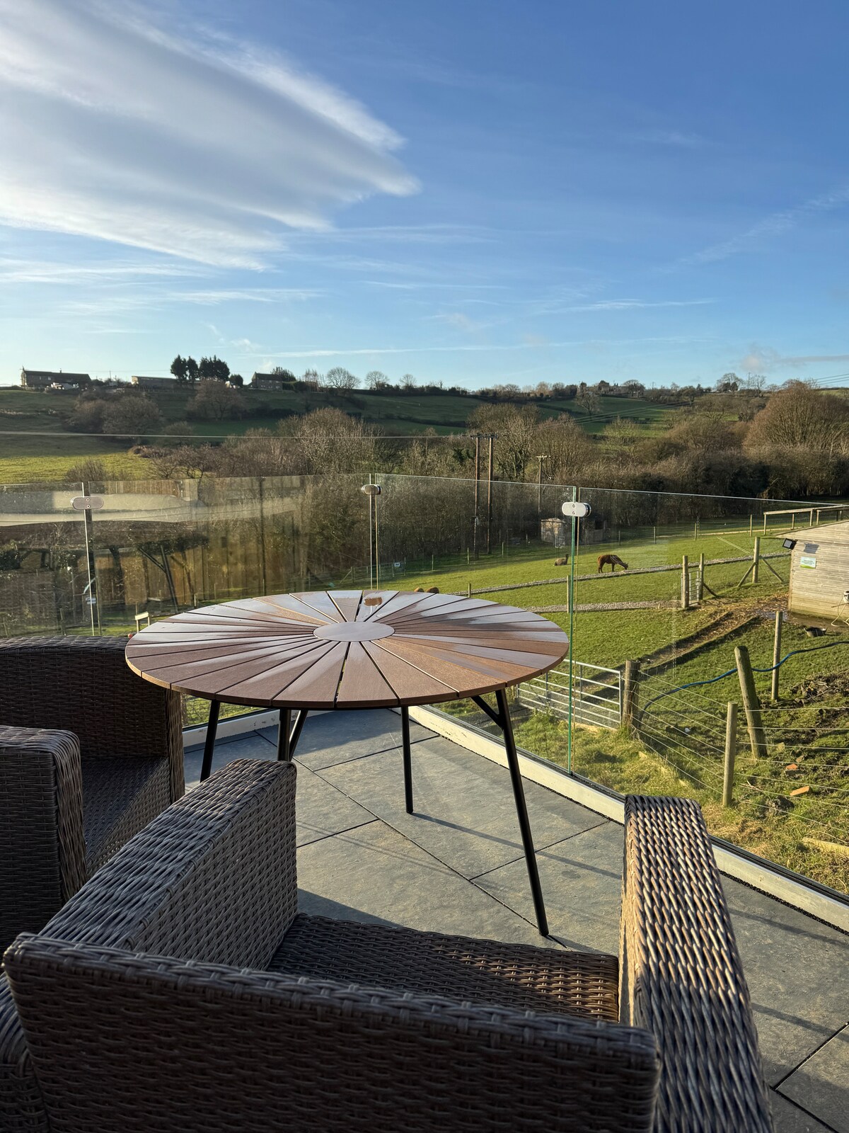 Relájate en Mirfield en tu propio balcón orientado al sur con hermosas vistas al campo. Este anexo independiente de 1 dormitorio con cama tamaño king + salón separado con unidad de aire acondicionado portátil/ventiladores, sofá cama, ropa de cama adicional de repuesto, lavadora, secadora, WIFI , a poca distancia a pie (15 minutos) de hermosos paseos por el río y el canal, una granja o una calle principal local. Los propietarios tienen 2 cocker spaniels, así que no les importa a los clientes que traigan una mascota bien educada en vacaciones también. También se proporcionarán suministros básicos para el desayuno.