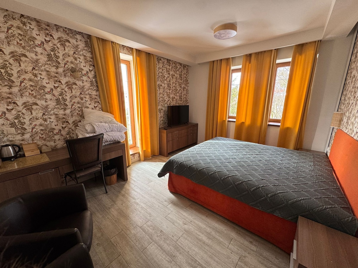 Acogedor apartamento en la parte baja de Sopot situado en una hermosa casa de vecindad con un enorme jardín. El estudio está situado en el cuarto piso, lamentablemente sin ascensor, pero las vistas desde la ventana deberían compensar este pequeño inconveniente :) El apartamento está excepcionalmente bien situado tanto para aquellos que quieren relajarse como para aquellos que buscan el entretenimiento que ofrece la ciudad. Todo está cerca: la playa, la estación de tren, restaurantes, tiendas, cine y teatro. Todo al alcance de la mano y al mismo tiempo en una zona tranquila del complejo.
