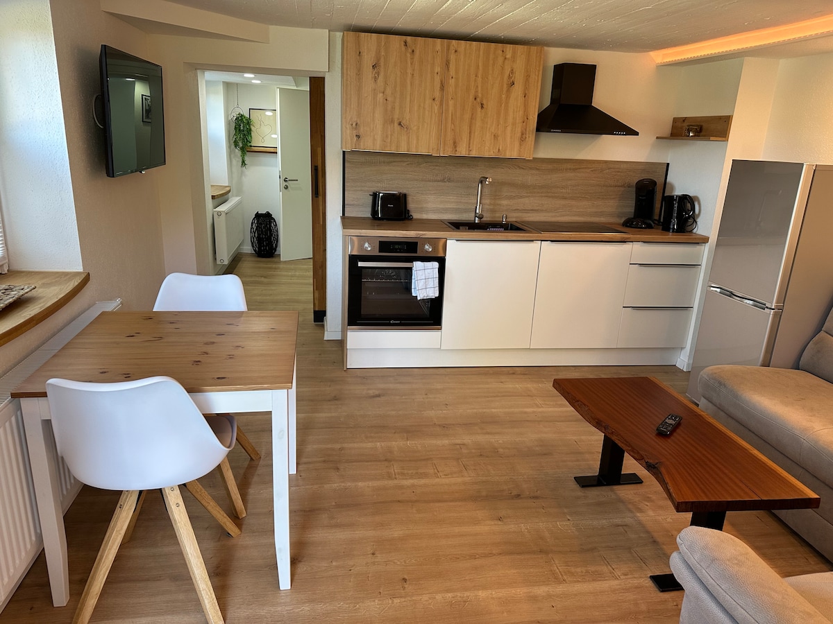El apartamento (45 m²) tiene una habitación, una sala de estar con sofá cama y mesa de comedor, un baño con ducha y una pequeña cocina. El equipo de cocina es adecuado para preparar el desayuno y comidas más pequeñas. Podrás disfrutar de la terraza con magníficas vistas al castillo y al casco antiguo de Bad Wildungen. El departamento se ubica en Altwildungen, el centro de la ciudad está a pocos pasos. El estacionamiento está disponible.