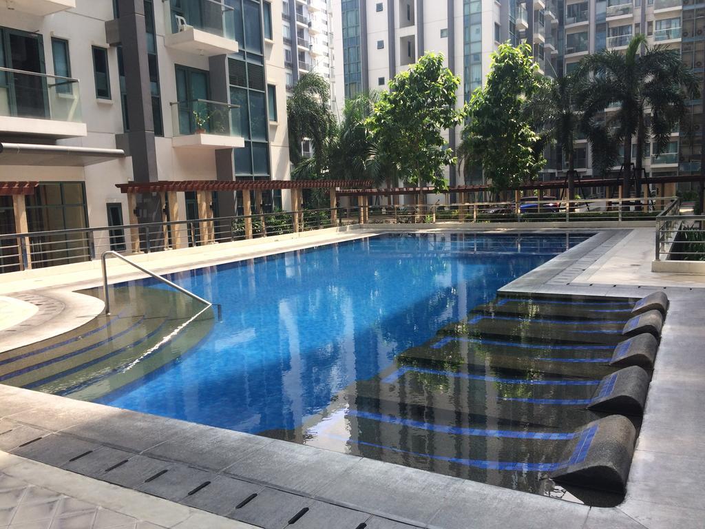 El espacio es un apartamento de un dormitorio de 38 metros cuadrados, con balcón, con una impresionante vista de 90 grados de Alabang, Skyway y la zona de la piscina del edificio y el exuberante jardín, lo que lo convierte en un equilibrio de espacios urbanos y verdes. Ideal para una estancia, como una alternativa de trabajo desde casa, o para familias que quieran relajarse y disfrutar del tiempo juntos. Es una unidad construida con detalles intrincados, espaciosa en comparación con una habitación de hotel al mismo precio. Nuestro propio aparcamiento en el sótano se proporciona a los huéspedes sin coste adicional.