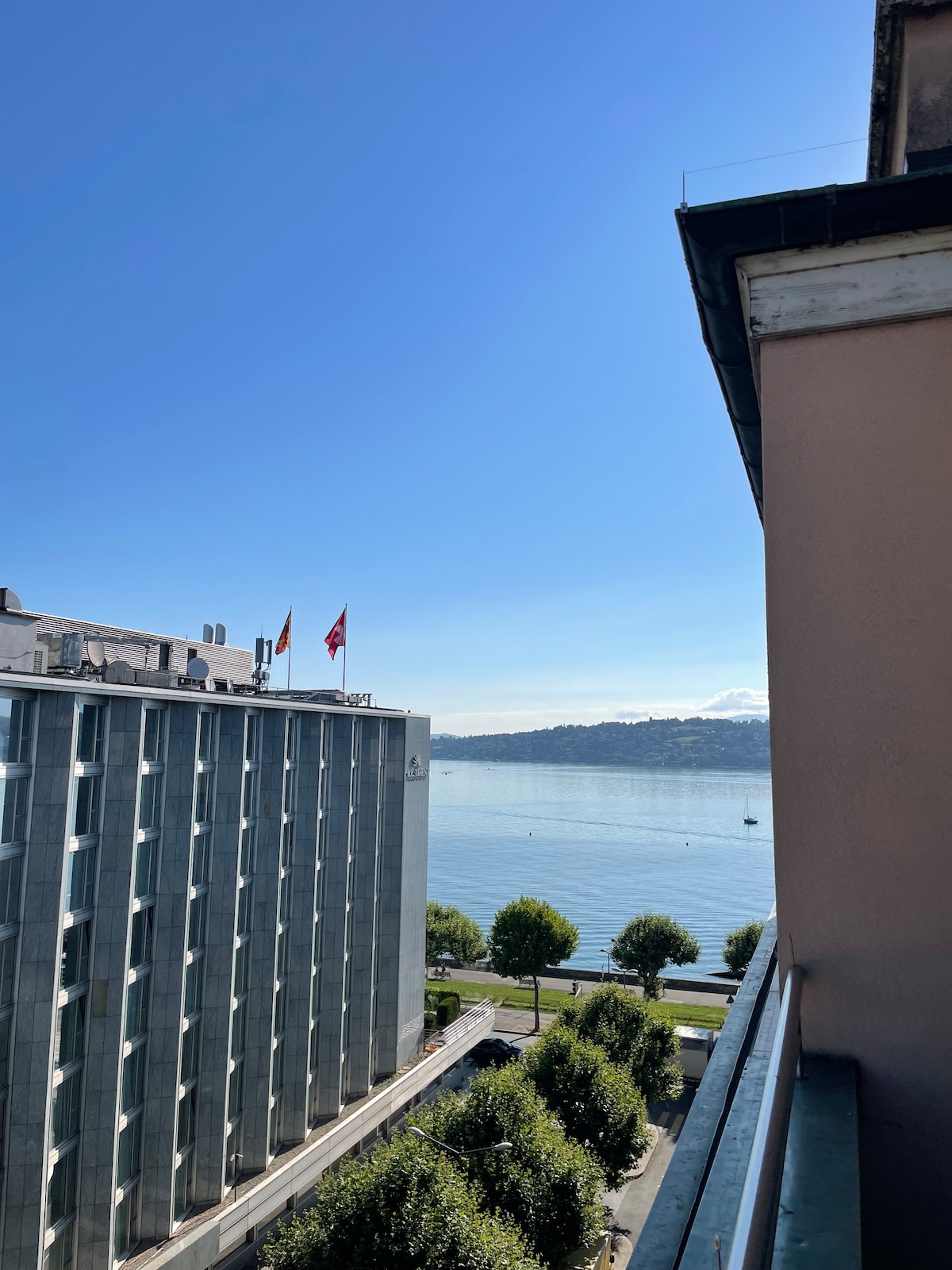Apartamento en planta superior en zona peatonal del centro de la ciudad (sin ascensor), salón con muebles de diseño + dormitorio con vistas al lago + vestíbulo de entrada + baño + cocina. Muy tranquilo y funcional con todo lo que necesitas. A poca distancia a pie de todas las atracciones y tiendas, el barrio más de moda y seguro, según comentan los huéspedes. Cocina totalmente equipada. Cama tamaño queen. Una sala de estar luminosa con una mesa, un sofá largo (no una cama), un sillón, sillas e iluminación regulable. Baño con ducha a ras de suelo y toallas. Sin TV. Wifi rápido de 350 Mbps.