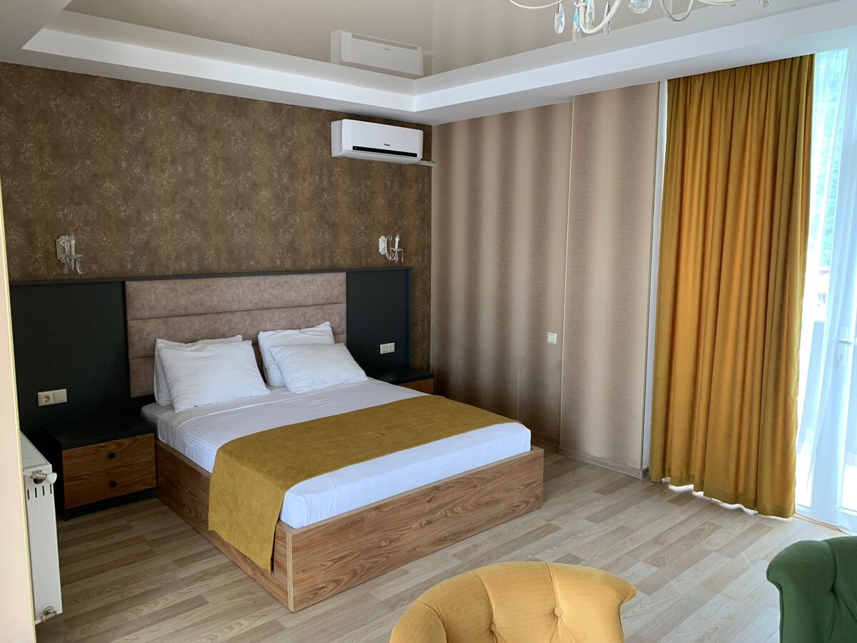 Se ha abierto una nueva casa de huéspedes con un jardín y una terraza,con una magnífica vista sobre Jvari y Svetitskhoveli,en el centro de la antigua capital de Georgia, la ciudad de Mtskheta, frente a la Catedral de Svetitskhoveli. La casa tiene 3 habitaciones con baños individuales y todos los servicios y un cómodo comedor bar,donde,si lo deseas,puedes usar la cocina. Además de las tres habitaciones del jardín, también hay una nueva cabaña con aire acondicionado con una pequeña cocina y un baño. Los anfitriones amables hablan ruso e inglés.