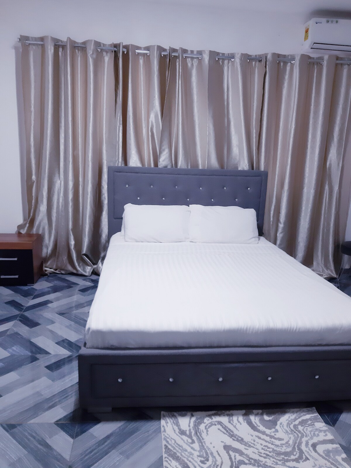 Ubicado en “Rash Comfy Apartments” en Google Maps. * Ubicación inmejorable (fácil acceso al centro comercial Achimota y al aeropuerto) * Farmacéutico interno disponible para primeros auxilios. * Adecuado para viajes individuales o en grupo. * Amplios dormitorios con baño privado, equipados con camas tamaño Super King. * Trabaja desde casa con wifi de alta velocidad 24/7. * Refrigerador, cocina totalmente amueblada para huéspedes de larga estancia. * Servicios de limpieza incluidos.