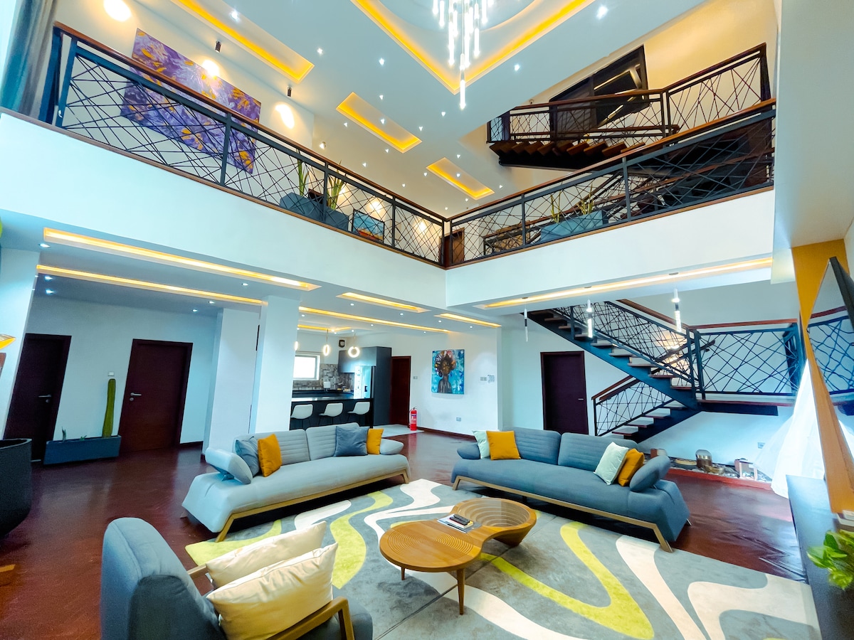 Adéntrate en un refugio contemporáneo de lujo y estilo: una magnífica casa moderna de 4 dormitorios cuidadosamente diseñada en 2023. Esta residencia, que combina a la perfección la arquitectura de vanguardia con la comodidad, está rodeada de jardines cuidadosamente diseñados, personificando la sofisticación y proporcionando un refugio inigualable para los huéspedes de todo el mundo. Estratégicamente ubicada, revela impresionantes vistas panorámicas que se extienden hasta las majestuosas montañas de Aburi.