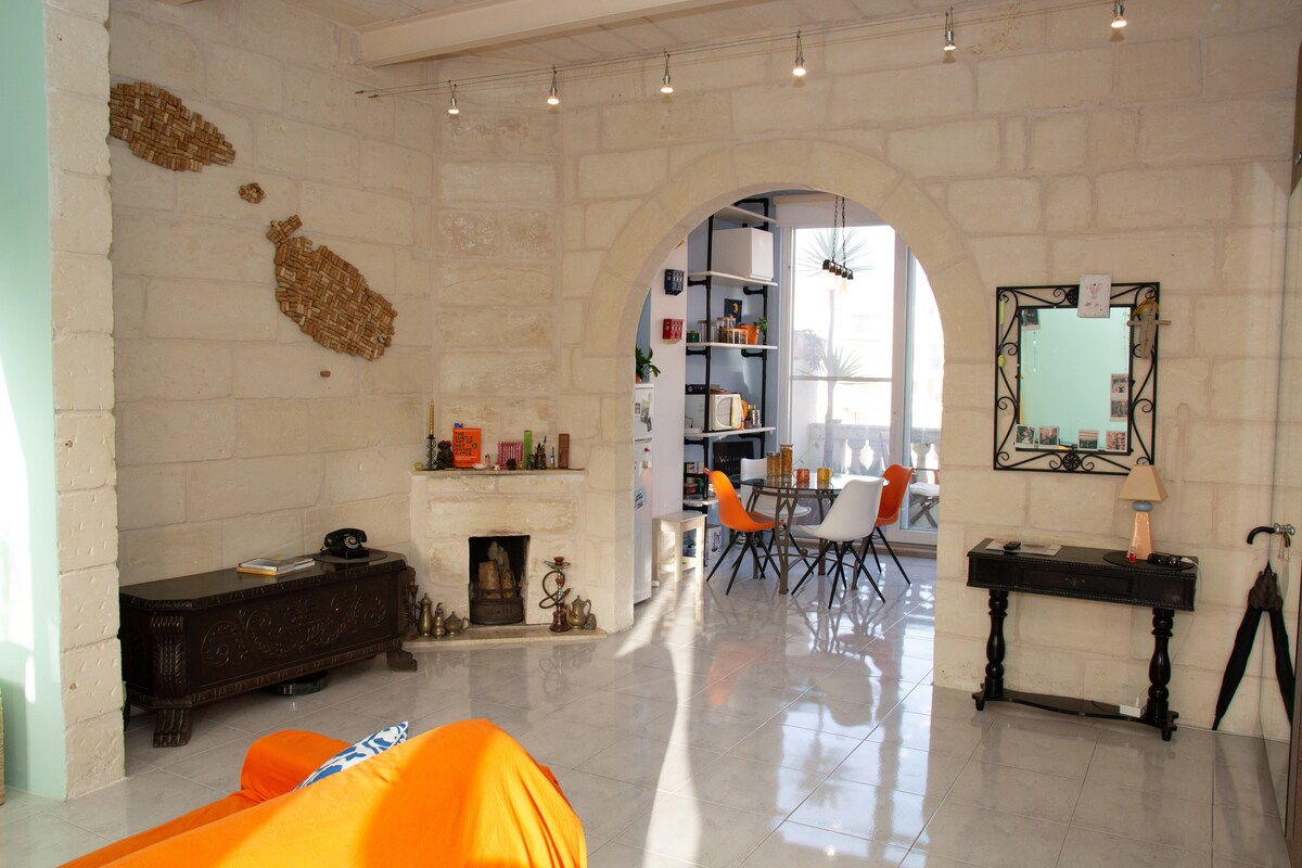 Beautiful Recently Renovated 1-bedroom Traditional Lime Stone Open Space Apartment with Modern Conveniences in Sliema with Valletta View and distant Sea View. Conveniently located on the border of Sliema/St. Julians/Gzira. Short walking distance to many bars, restaurants and beaches. Romantic bedroom with Super King size bed, huge living room with unfold-able Queen-size sofa. Working Fireplace to turn cooler months into cozy months, Rooftop hangout in summer!