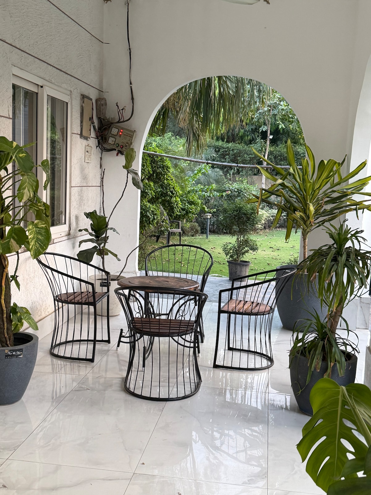 Nuestro apartamento de dos dormitorios tiene un verdadero ambiente urbano. Se adapta cómodamente a cuatro personas. Tendrás todo el apartamento para ti: un hermoso jardín, una cocina bien equipada y un estudio acogedor. El apartamento ofrece fácil acceso al histórico complejo Qutab Minar, varios parques y centros comerciales con restaurantes y cines. También está a poca distancia de Max y Max Smart Super Speciality Hospitals. Moverse es conveniente con el metro (línea amarilla) a solo dos minutos a pie.