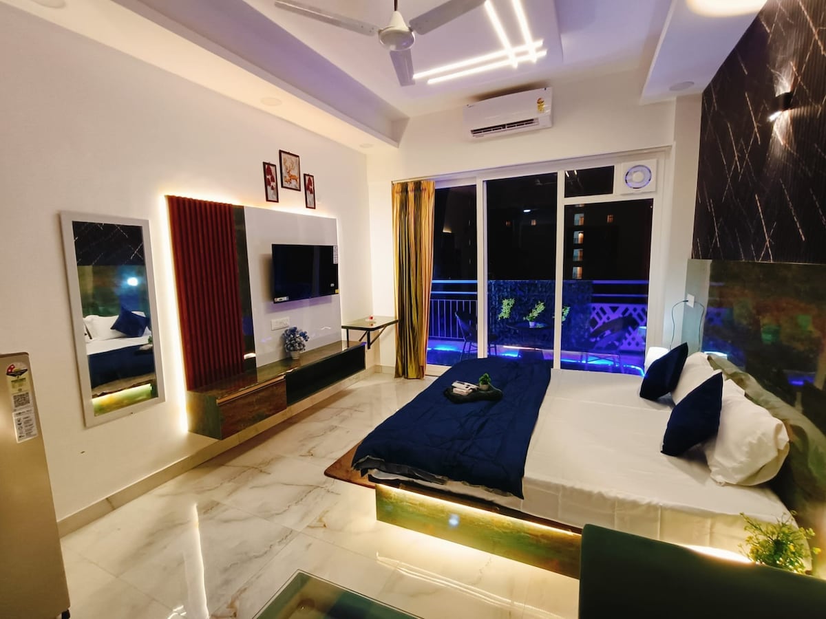 Lujoso apartamento estudio totalmente amueblado con todas las comodidades modernas disponibles en el Gran Noida cerca de la estación de metro. Lujoso , encantador y acogedor estudio para parejas en Greater Noida cerca de Expo Mart. Lo que te encantará: Interior ✔ único: disfruta del fascinante interior. Comodidad ✔ moderna: un espacio bellamente amueblado con una cama cómoda, asientos acogedores y una decoración elegante. ✔ Cocina totalmente equipada: cocina tus comidas favoritas con facilidad. ✔ Wifi rápido y TV inteligente: mantente conectado y entretenido.