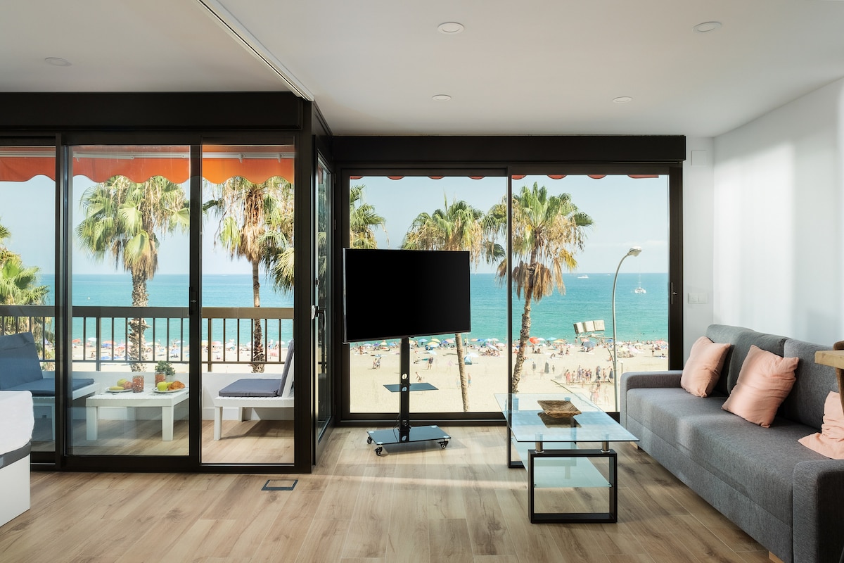 APARTAMENTO NUEVO en la PLAYA! En la playa,vistas espectaculares al mar, terraza frontal.Cocina equipada y zona de trabajo en los dormitorios. Wifi alta velocidad A menos de 2 min: supermercados, Muelle Uno,restaurantes,chiringuitos,farmacia,... A 10-15´andando el CENTRO HISTÓRICO, Parque,Catedral,Alcazaba,Mercado Atarazanas,Plaza Merced, Soho, C/Larios...