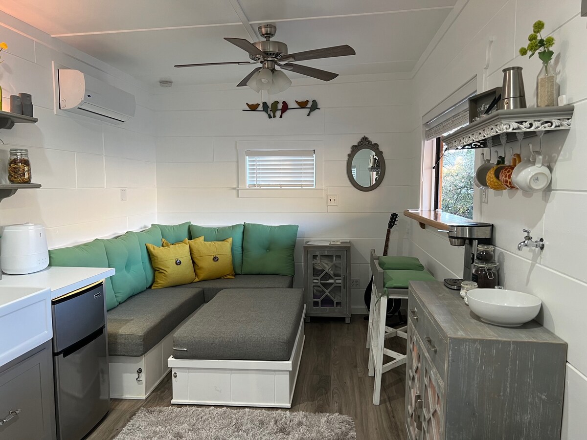 La casa del árbol/minicasa es nuestra casa de huéspedes de 200 pies cuadrados, ubicada en el patio trasero de nuestra residencia principal privada. Esta pequeña casa tiene todo lo que necesitas para una estancia corta. La cama DOBLE se convierte en sofá. Nevera pequeña, quemador, microondas, cafetera y otros elementos esenciales. Inodoro y ducha privados (sin bañera). A poca distancia a pie del sendero L.O.S.T. que conecta con el sendero de Arizona, a poca distancia a pie del puente que conduce a la calle principal y acceso a wifi, parrilla, jacuzzi y aparcamiento privado.
