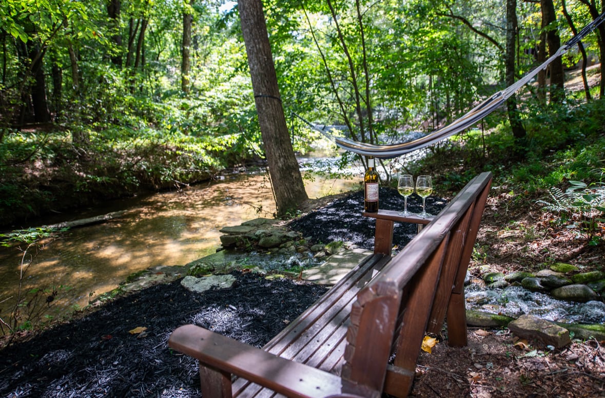 ¡Romántica cabaña junto al arroyo en 8 acres aislados!