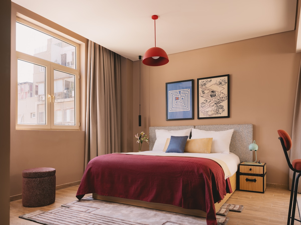 Experience Downtown Cairo from a space steeped in history and full of character. Once a bank, now reimagined as a boutique stay, Saint Joseph Hotel brings playful design and colorful charm to one of the city’s most iconic corners. Overlooking Talaat Harb Square and steps from the Egyptian Museum and Tahrir, each studio blends modern ease with a vibrant, heritage-rich vibe. Whether you're here to explore or unwind, this is your laid-back launchpad in the heart of it all.