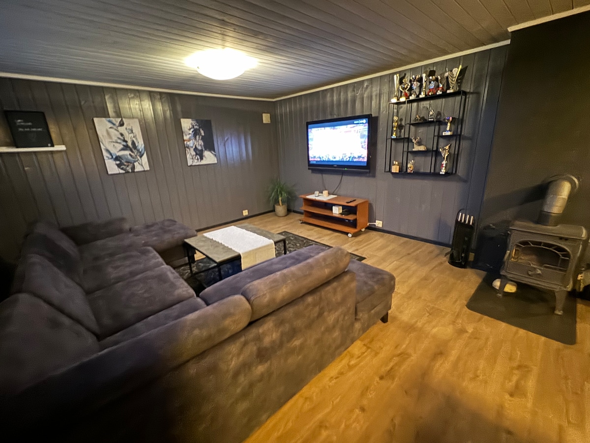 Acogedor apartamento recientemente renovado con dormitorio y sofá cama doble. Hasta 4 adultos+ niños en una cama/colchón de viaje (avísanos si quieres un colchón/cama de viaje) La cocina tiene el equipo necesario Estacionamiento gratuito Tu propia entrada A poca distancia a pie de Kongeparken (20 minutos). Proximidad a la zona de baño, contenedores de fútbol, voleibol de arena, cancha de frisbee, terreno de senderismo, enchufe noruego. Posibilidad de pedir carga para vehículos eléctricos. (Solicita un precio) Incluye ropa de cama y toalla de ducha