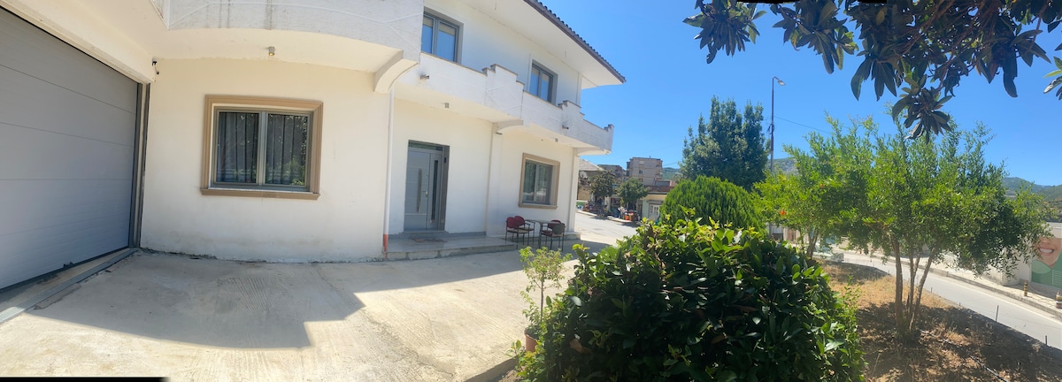 La casa es una hermosa casa en la cima de una colina a solo 15 minutos del castillo de Gjirokaster. Perfecta para reuniones. Estos son algunos de los detalles de esta preciosa escapada: — 3 dormitorios. — 2 baños. — 1 sala de estar independiente. — 1 balcón con unas vistas estupendas. — 1 plaza de aparcamiento. — HABITACIÓN 1: El dormitorio principal de arriba tiene una cama tamaño king, TV, un vestidor grande y su propio baño. — HABITACIÓN 2: Arriba tiene una cama tamaño queen, suelos de madera y aire acondicionado. — HABITACIÓN 3: abajo, con 2 camas individuales.