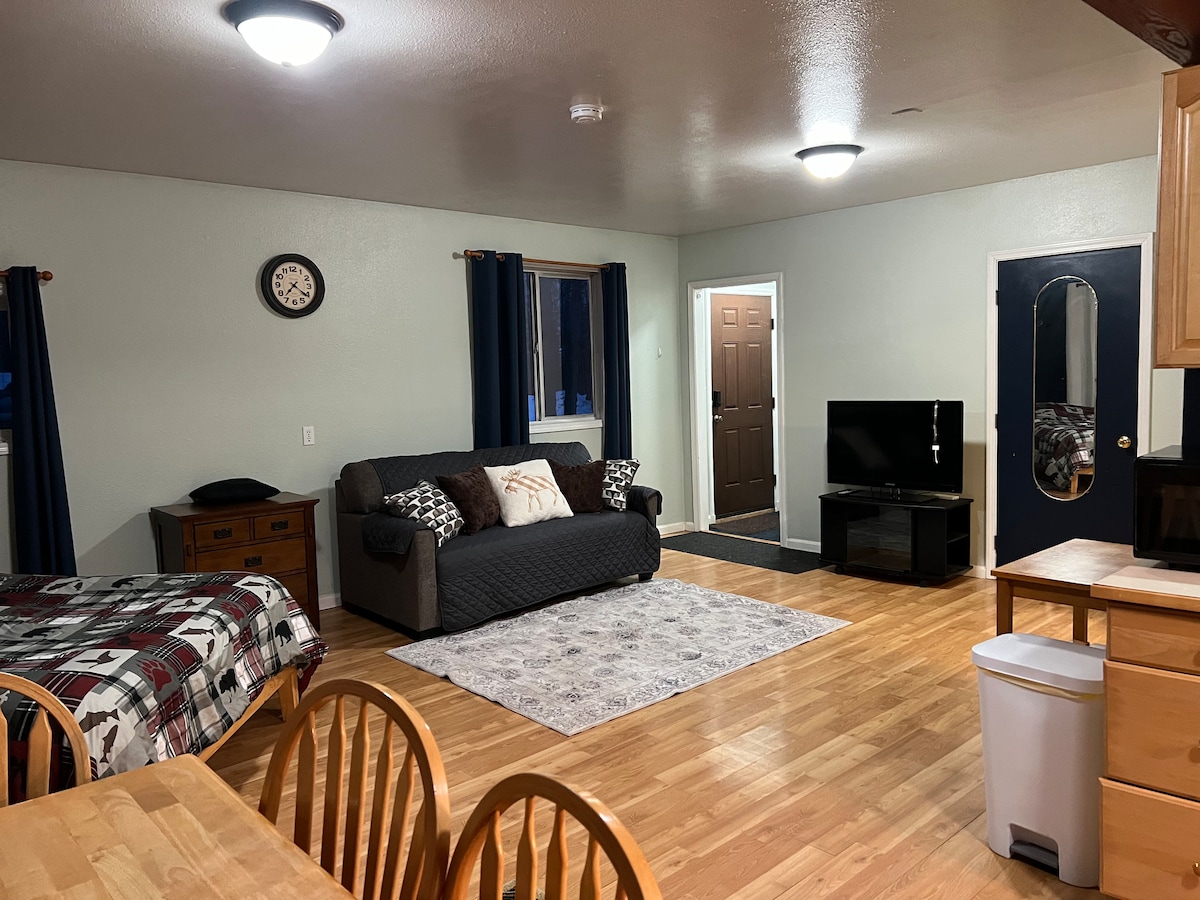 Wake up to Pioneer Peak views in this private log studio tucked into the Butte. Perfect for couples or solo travelers looking for quiet, comfort, and quick access to Palmer, hiking, and fishing. It’s a great location for all that Butte, Alaska has to offer, including the famous Reindeer Farm just down the road. It’s a comfy studio with kitchenette and refrigerator. Perfect for an adventurous getaway in Alaska! PLEASE NOTE: THERE IS A SECONDARY UPSTAIRS UNIT ABOVE THIS STUDIO.