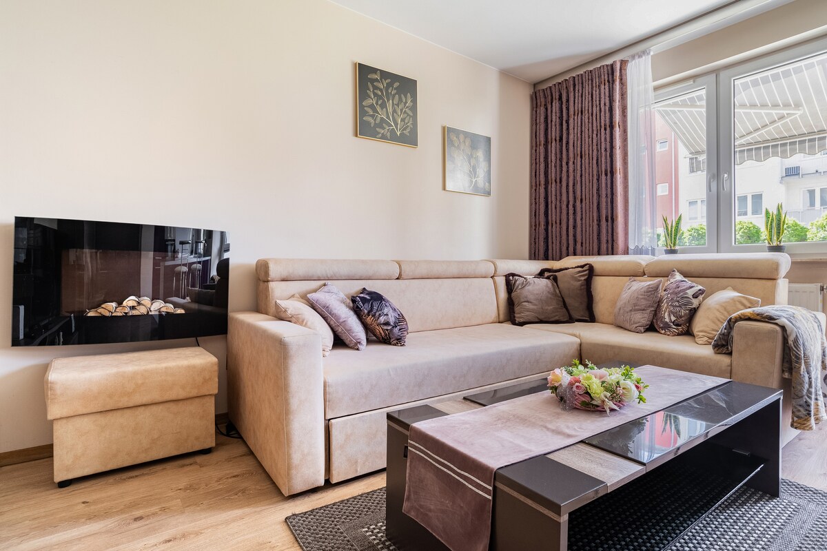 Apartamento en el centro de la ciudad, que cuenta con un salón con un gran sofá cama y una cocina americana, un dormitorio (4 camas en total), un baño y un vestíbulo. El apartamento está totalmente equipado. Bloque vigilado. La ventaja del local es también su ubicación. Se encuentra lejos de las calles con mucho tráfico, pero cerca, por ejemplo, de un centro comercial (800 m), un pabellón deportivo en la calle Struga (200 m) o el parque Leśniczówka (200 m). La distancia a las estaciones de tren y autobús es de unos 2000 m.