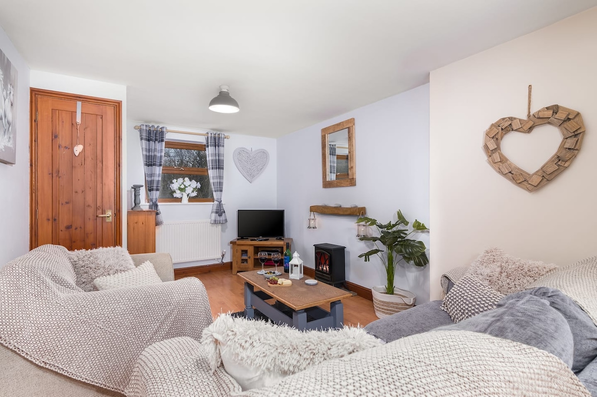 Cottage style annexe, 4 comfortable rooms, Own entrance Kitchenette, Belfast sink Kettle toaster combination microwave (oven/grill/microwave) Single Ring Hob Slowcooker larder fridge pots cutlery Complimentary Breakfast Cereals Tea Coffee Sugar. Fresh eggs from our hens Downstairs shower room/toilet washbasin towels Snug lounge /log burner, please bring your own logs/kindle. DVD player/movies Upstairs bedroom/double bed WiFi An ETA for guests Check-In is needed the day before arrival