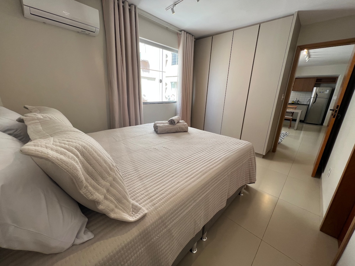 Piso 1 suite con box, Armarios, Cocina completa, Nevera, Cocina eléctrica 02 bocas, Microondas, Bodega, Purificador de agua, Sandwichera, Cafetera, Mostrador con 3 taburetes, Cama de matrimonio, Ropa de cama/baño, Sofá cama, Aire acondicionado, Rack, Mesa home office, TV 50", Estacionamiento privado gratuito, Wi-fi, Recepción 24 horas, Cerradura digital, Lavandería, Gimnasio, Sauna, SPA, Espacio gourmet y salas de reuniones. MEJOR UBICACIÓN DE GOIÂNIA, cerca de Shopping y Parque Flamboyant, a 12 km del aeropuerto.