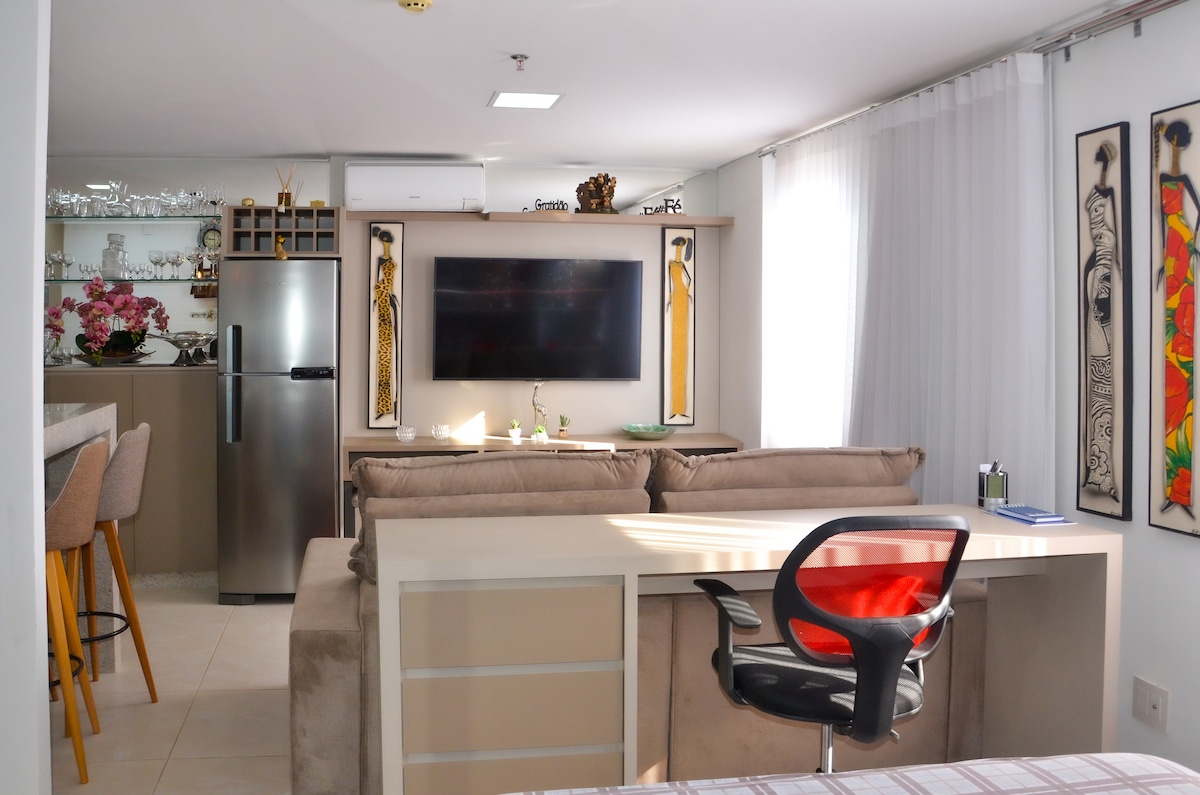 Amplio apto. de 1/4. Moderno, completo y confortable. Alto nivel con 60m2; decoración retro; Varios objetos/muebles de Tok&stok. Registro automático. La ubicación es genial, cuenta con comodidades y un estudio gastronómico (vintage) con pizza artesanal al lado del edificio. (¡Maravilloso!). Entrada/salida negociable. *Registro: edificio/entorno con estrictas normas de tranquilidad.