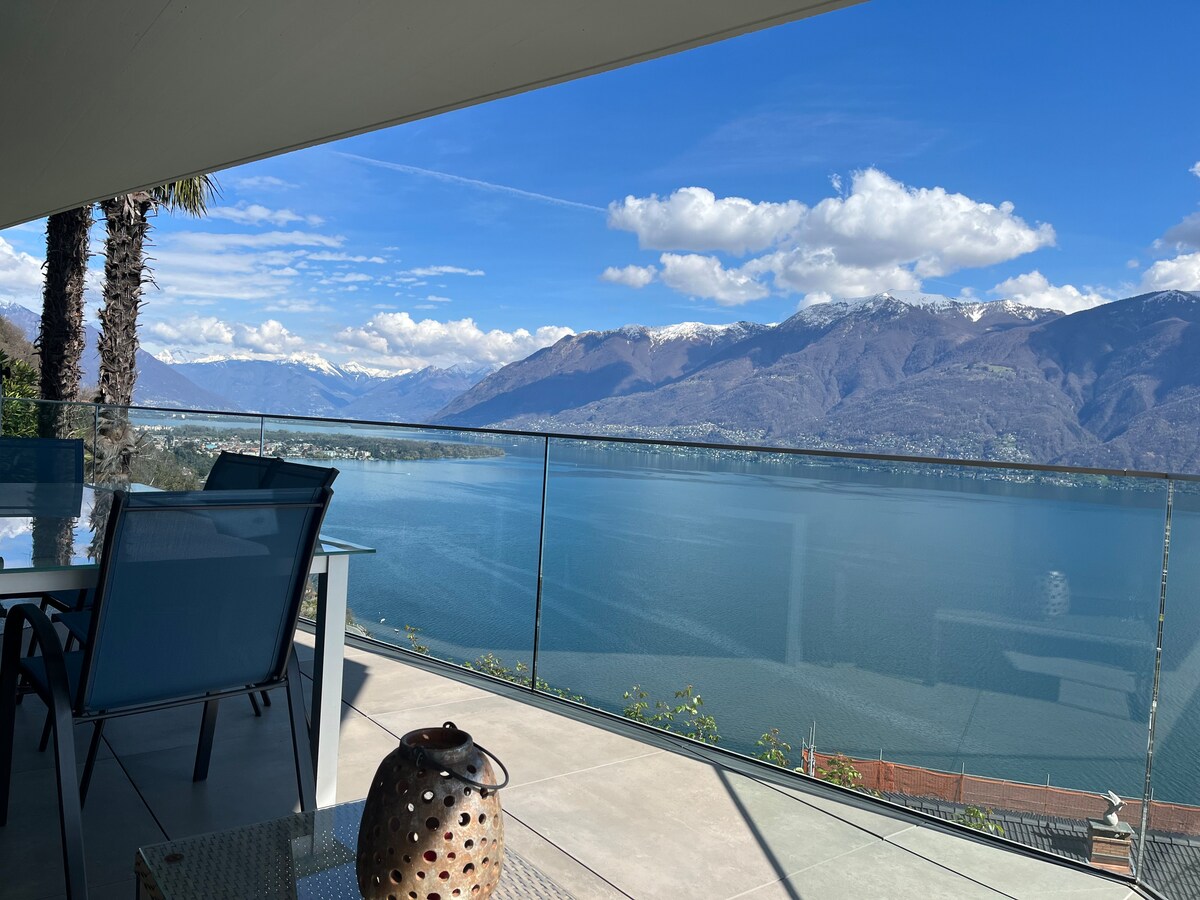Esta hermosa casa unifamiliar de nueva construcción con vistas espectaculares al lago Mayor, Ronco, Italia, Ascona y Locarno te dejará sin palabras. El espacioso apartamento (150 m2) tiene ventanas del suelo al techo en todas las habitaciones, una cocina de diseño personalizado de planta abierta, una gran terraza con vistas al lago y dos plazas de aparcamiento. También ofrece ascensor y es totalmente accesible en silla de ruedas. Ascona, el acceso al lago y las tiendas están a solo 10 minutos en coche.