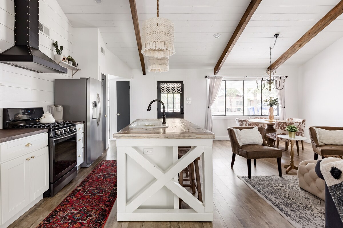 Relájate en la hamaca del patio antes de cenar bajo las luces algo de la parrilla de gas. O acércate a la isla hecha a medida y disfruta de una copa de vino o de tu comida favorita. El estilo suroeste caracteriza el interior, con un gran marco de ladrillo que muestra la acogedora cocina. ¡Esta casa es una casa histórica recién reformada de 1941! La casa Boho/Southwest está completamente remodelada y ofrece todas las comodidades que puedas desear o necesitar para una estancia cómoda, con una ubicación céntrica cerca del aeropuerto, centro de convenciones, estadios deportivos, lagos de Tempe Town, senderismo ASU y muchos restaurantes y bares. Hay dos dormitorios con camas y dos baños en la casa, y viene bien para un grupo de amigos, dos parejas o familias pequeñas. Esta casa está situada en un oasis ajardinado con muchas comodidades interiores y exteriores para que tu estancia sea agradable. Interior Hay dos dormitorios y 2 baños que puedes utilizar. Hay un dormitorio y algunos armarios que utilizamos para guardar nuestras cosas y que no estarán disponibles para tu uso, pero todos los demás espacios son tuyos. La sala de estar cuenta con TV de pantalla plana con Netflix, Amazon TV y Hulu con wifi rápido. En el exterior. El patio permite cenar bajo las luces y descansar en la hamaca. El wifi rápido llega a todo el alojamiento, incluidos el patio al aire libre y las zonas del porche. No dudes en ponerte en contacto con nosotros si quieres utilizar la parrilla de gas. En los días calurosos de Arizona, te recomendamos que te des un chapuzón en la piscina (cerrada durante el otoño/invierno). El patio trasero es un espacio compartido. También alquilamos la casa de huéspedes trasera a través de Airbnb y podrías compartir el patio trasero con otros huéspedes. Si también quieres alquilar la casa de huéspedes, puedes encontrar el anuncio aquí: https://www.airbnb.com/rooms/21379278?s=51 Cocina: para aquellos a los que les gusta cocinar, la cocina tiene todos los electrodomésticos nuevos, incluyendo: nevera, cocina de gas, microondas, Chemix, cafetera, hervidor de agua, ollas, sartenes y utensilios. ¡Puedes servirte lo que quieras de la nevera y la despensa! Baño: los baños están equipados con artículos que incluyen secador de pelo, papel higiénico y toallas limpias. Otros servicios - Lavadora/secadora: hay lavadora y secadora privadas disponibles y se puede acceder a ellas con un código electrónico. - Mantas, sábanas y almohadas adicionales disponibles bajo petición. ¡No se permiten fiestas! Para hacer el servicio de llegada, le enviaremos un código a la caja fuerte para recoger las llaves y podrá llegar en cualquier momento después de las 15:00 horas y así registrarse. Le ruego que devuelva las llaves antes de salir a las 11:00 horas. ¡Aunque no estaremos en la casa durante su estancia, no dude en ponerse en contacto con nosotros si tiene alguna pregunta! Vivimos justo al final de la calle y si necesitas algo puedes llamarnos o enviarnos mensajes de texto. También le podemos ofrecer recomendaciones locales. El barrio está muy céntrico, a poca distancia a pie de muchos restaurantes y bares codiciados. Pasea por uno de los parques locales y junto al lago Tempe Town, a solo una milla de distancia, antes de buscar algunas gangas en Tempe Market Place. Desplazarse por la zona es muy sencillo. Camina, ve en bicicleta, tren ligero o Uber. Estar en el corazón de todo hace que el transporte sea muy fácil. La casa de huéspedes trasera también está en Airbnb. Es posible que compartas el patio trasero con otro huésped. Estas tarifas son solo para huéspedes que pernocten. Las tarifas para sesiones de fotos y uso comercial son diferentes. Envíanos un mensaje para obtener más información o para reservar el tuyo hoy mismo.