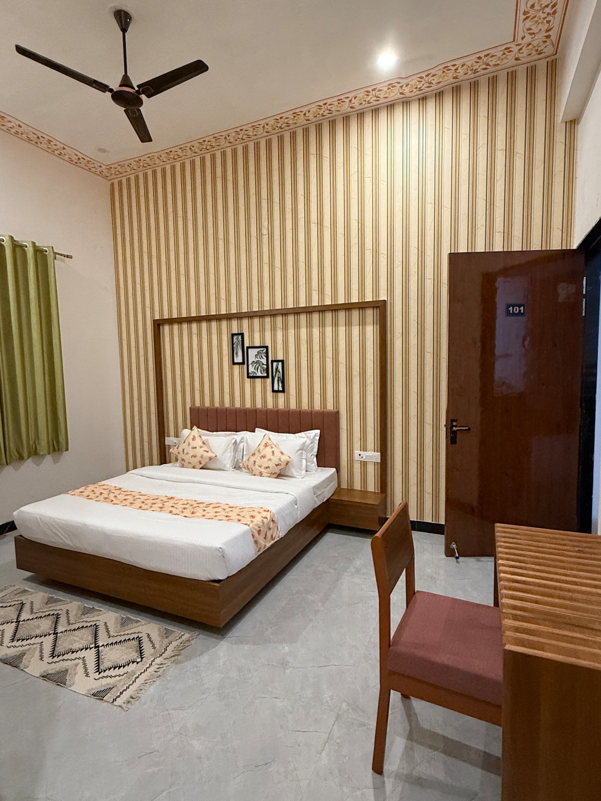 Te damos la bienvenida a Shreeji Mahal Hotel By Serenity Horizon: tu escapada serena a Udaipur Ubicado en Nāi (a las afueras del bullicio del casco antiguo de Udaipur), Shreeji Mahal by Serenity Horizon es un encantador refugio de 3 estrellas que ofrece comodidad moderna con un toque de elegancia. Situado a unos 6 km de atracciones emblemáticas como el lago Pichola, el Palacio de la Ciudad y el Templo Jagdish, es una base tranquila tanto para hacer turismo como para relajarse .