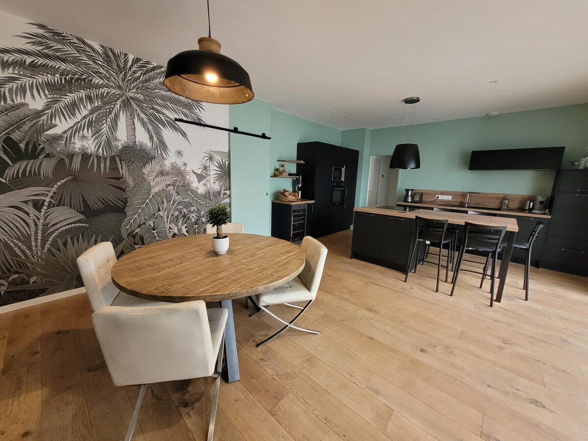 Disfruta de un apartamento de 55 m2 con garaje privado y pequeño patio exterior, elegante y céntrico reformado con cuidado Idealmente situado en el corazón de Clisson a dos pasos de la estación de tren frente al Castillo en una calle peatonal tranquila Numerosos paseos posibles en Clisson y en el corazón del viñedo de Nantes. A 30 minutos de Nantes en coche y a 20 minutos en tren y a 45 minutos de Le Puy du Fou. Muchas playas a 1 hora en coche. Visita Hellcity, ¡no te lo puedes perder! 😉 Alquiler Hellfest 6 noches como mínimo
