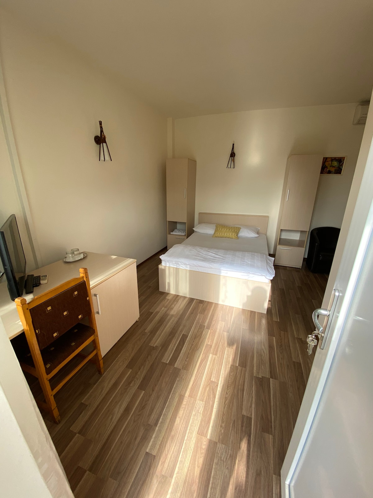 Un ambiente acogedor, en una zona muy tranquila cerca del centro de la ciudad. Muebles nuevos, cocina equipada (estufa, campana, nevera, lavavajillas, platos y cubiertos) sin microondas, lavadora, aire acondicionado, TV inteligente con Netflix, Internet Wi-Fi de alta velocidad. Un dormitorio con una cama doble y un dormitorio con una cama doble individual (se puede desplegar y convertir en dos camas individuales), ropa de cama y toallas incluidas. Estacionamiento gratuito en la calle. Tienda de comestibles frente al edificio.