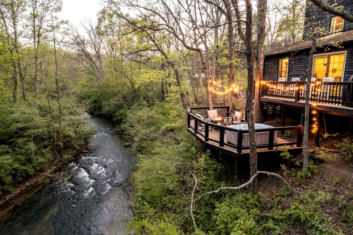 Cabin Overlooking River w Hot Tub, Fire Pit & more