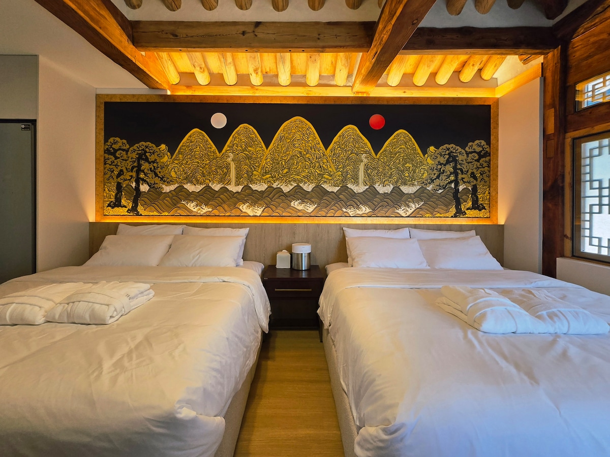 This beautifully restored hanok, over 100 years old, is nestled in the heart of Seoul’s Bukchon Hanok Village. Despite its central location, the house is surrounded by a quiet neighborhood and opening up to a stunning view of Inwang Mountain. Inside, you’ll find modern amenities like a fully equipped kitchen, a steam sauna, massage chair, and a small courtyard in the center.
