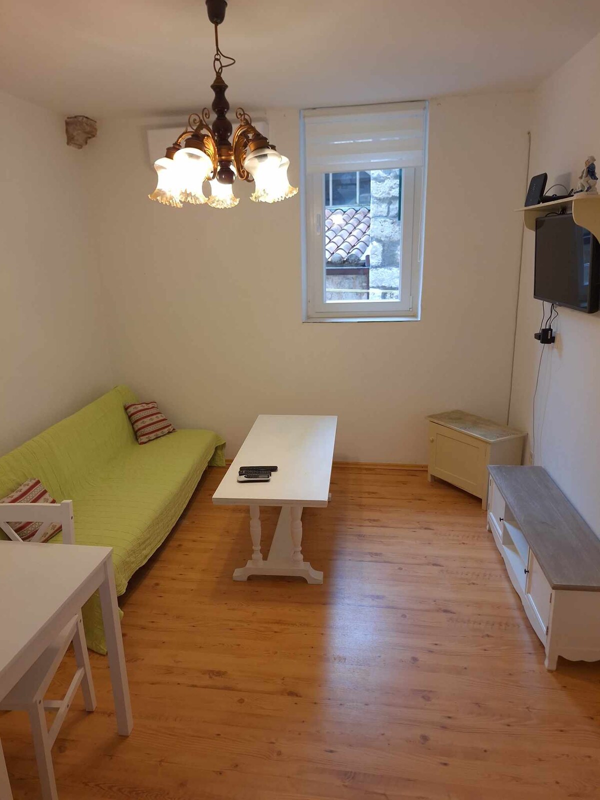 Un apartamento tipo estudio relativamente cerca de la plaza de la ciudad (a 5 minutos a pie) con una vista preciosa de la ciudad y el mar. Cuenta con una pequeña terraza y un balcón desde el que podrás disfrutar de las vistas. Delante de la casa tenemos un aparcamiento privado por si llegas en coche. El apartamento está en el segundo piso y nosotros vivimos en la planta baja, por lo que si necesitas algo, siempre habrá alguien cerca para ayudarte. El apartamento fue renovado en 2020.