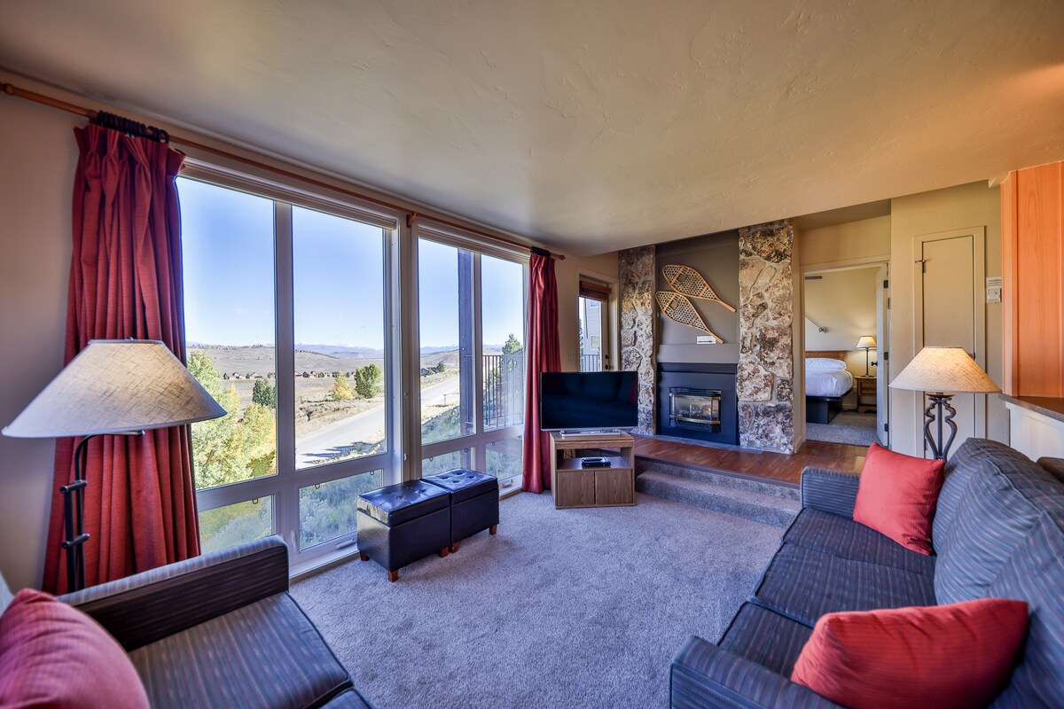 ¡Cocina y baños renovados! - Apartamento en planta superior con impresionantes vistas al centro vacacional. - A minutos del centro de la ciudad. - 2 amplios balcones y sauna privada. - Planta abierta con 2 salas de estar, isla de gran tamaño y comedor. - Perfecto para cenar, jugar o ver películas junto al fuego. Transporte a Winter Park/Mary Jane, excursión de un día a Devil's Thumb Ranch, lago Granby, Grand Lake, el Parque Nacional de las Montañas Rocosas o Hot Sulphur Springs. ¡Aproximadamente a una hora de Denver! NOTA: La bañera de hidromasaje comunitaria es compartida.
