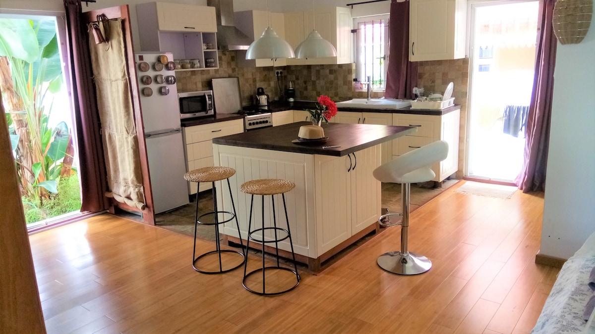 PISCINA, AIRE ACONDICIONADO , Comodidad total a dos pasos de las playas. Se hará todo lo posible para que tu experiencia sea inolvidable: Se proporciona toda la ropa de cama, buceo, catamarán, senderismo, natación con delfines. Chamarel la tierra de 7 colores. lago sagrado. Parque de cocodrilos. Venga a disfrutar y admirar las puestas de sol. Disfrute de un buen té. ¡Dirección cerca de lo mejor de la isla! ¡Buenos planes para que los descubra en el lugar!