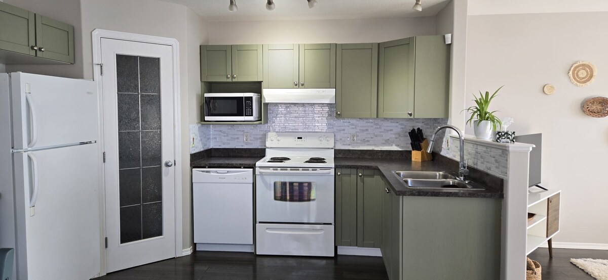 Acogedora suite privada en el sótano en Northwest Grande Prairie. Disfruta de una cocina totalmente equipada, lavadora/secadora en la suite, internet de alta velocidad y una cómoda cama tamaño queen. Ubicado a pocos minutos del hospital, el centro comercial y los centros comerciales. La entrada sin llave, el estacionamiento gratuito y tus anfitriones viven arriba para garantizar tu comodidad. Perfecto para viajeros solitarios, parejas o familias pequeñas. ¡Reserva hoy mismo para una estancia relajante y cómoda!