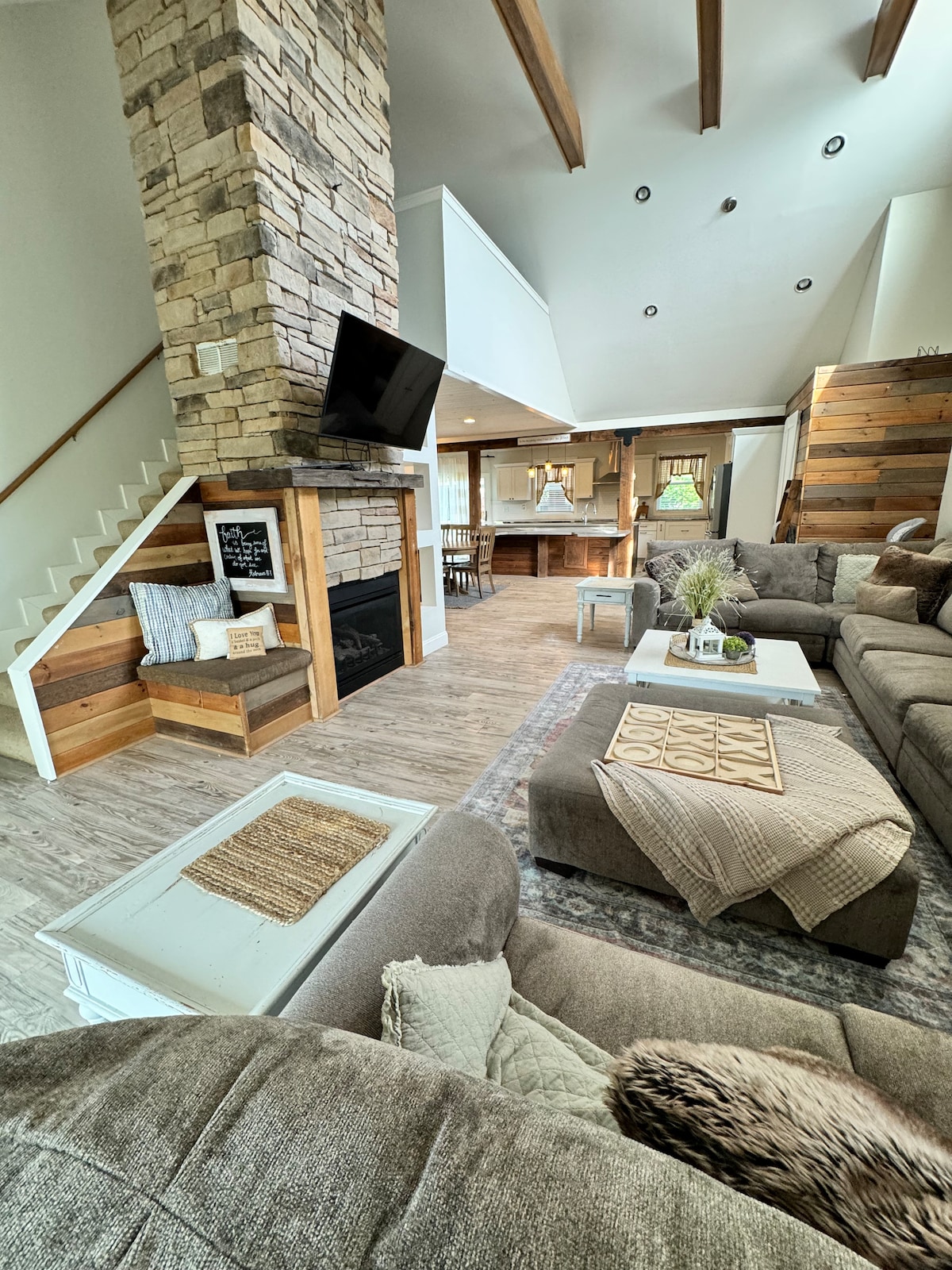 Prepare yourself to sojourn in this charming Chalet Haus in Kentucky. This beautiful cozy home highlights a spectacular game room! Comfortably sleeps 10 people. Conveniently located only 5 minutes from the fabulous Ark Encounter experience! Only a few minutes away check out, the small town charm of, historic downtown Williamstown. You don’t want to miss Waterworks Splash Pad and Webb Park. Also only 40 minutes to the Creation Museum, an absolute must see!