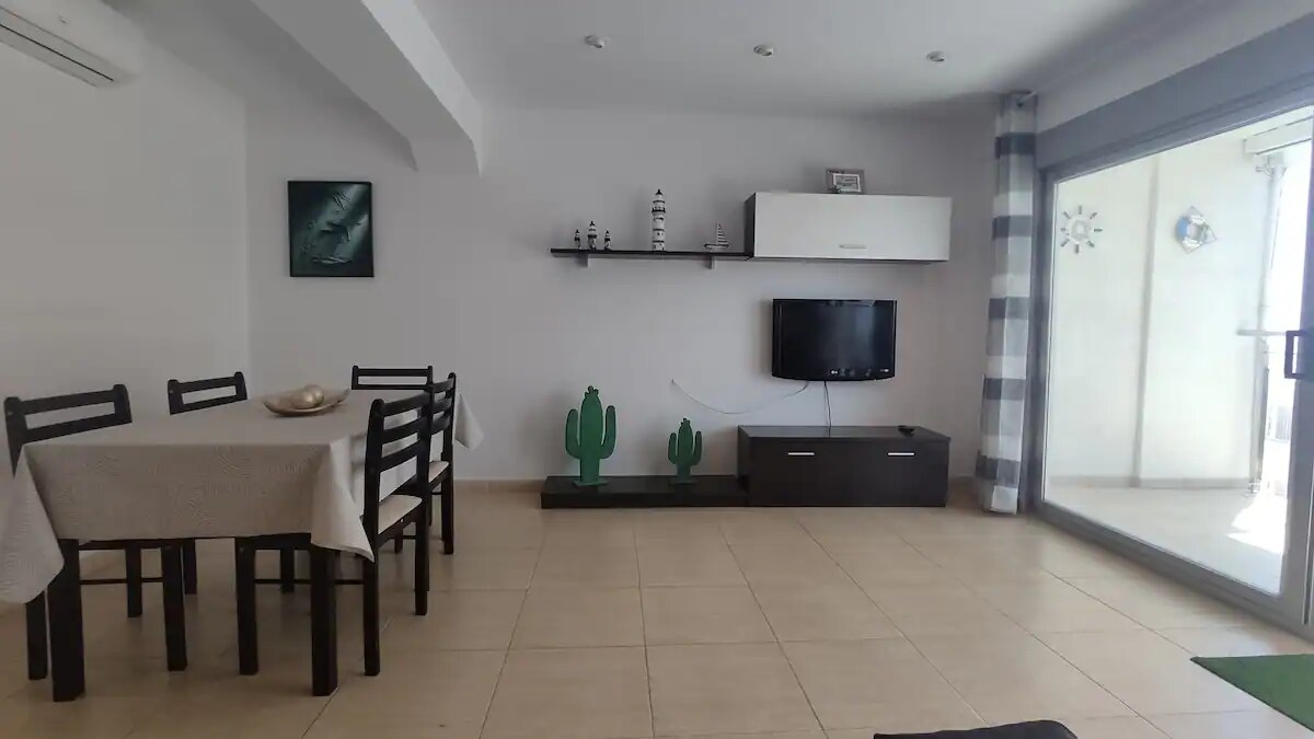 Cómodo apartamento en planta baja. Podrás disfrutar de comidas al aire libre en una amplia terraza. Puedes estacionar tu vehículo. El apartamento se encuentra a tan solo 50 metros de la primera línea de la playa. Supermercados, cafeterías, heladerías, juegos para niños en la playa,... todo lo puedes encontrar cerca del apartamento. Es un apartamento ideal para familias con niños ya que pueden estar jugando en el patio vallado. La puerta del parking es automática. Alquiler para familias
