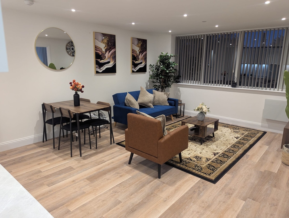Disfruta de una experiencia elegante en este lugar céntrico. Bienvenido a tu elegante escapada en el corazón de Gravesend. Situado en Trinity Point en New Road (DA11), este moderno apartamento combina un diseño elegante con una comodidad inmejorable. El espacio Sala de estar luminosa y de planta abierta con grandes ventanales y decoración contemporánea. Cocina totalmente equipada con todo lo necesario para comidas caseras Cómodo dormitorio con ropa de cama de calidad para una noche de descanso.