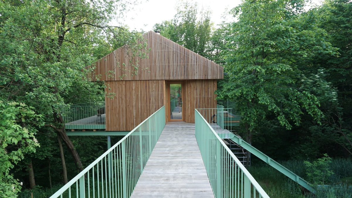 Reservar una casa del árbol verde es un gran lugar para un descanso en el borde del bosque. Está rodeado de árboles, prados, un fogón y recintos de animales. Se prestó especial atención a la arquitectura de alta calidad: la casa del árbol es sostenible y está construida con materiales de alta calidad y ofrece un ambiente agradable en medio de la naturaleza. Ya ha sido galardonado con el Geramb Rose 2024, un premio de arquitectura de Estiria y un premio de construcción de madera. Está tranquilamente ubicado lejos del patio.