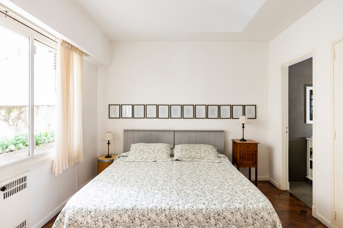 Es un departamento elegante, amplio (60 m2) y luminoso en un antiguo edificio de Recoleta, con una excelente ubicación para vivir una experiencia porteña con espacios verdes, rodeado de museos y restaurantes. Está muy bien decorado, lo que lo ha llevado a ser publicado en revistas de decoración relevantes. Tiene un pequeño balcón que mira a una plaza pequeña (Plaza del Lector II). La Biblioteca Nacional esta a media cuadra en diagonal.