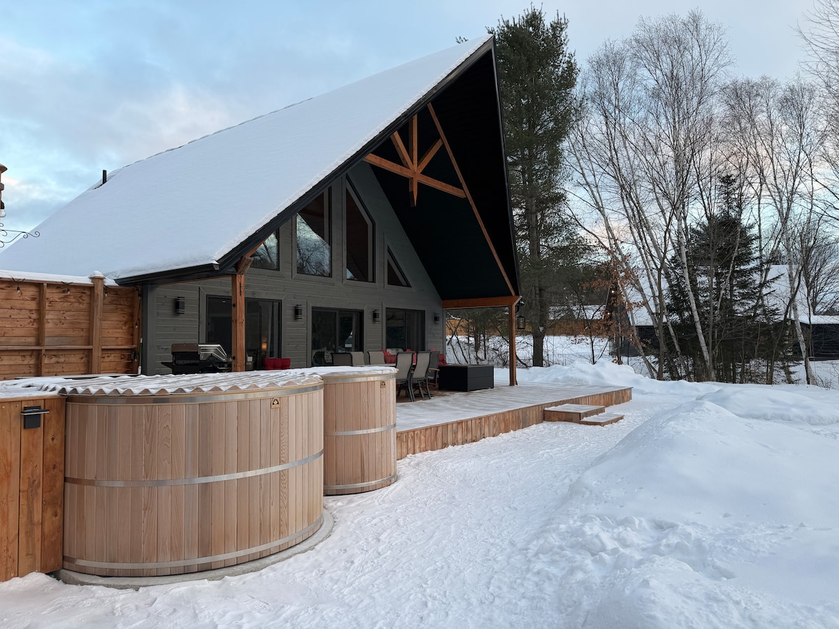 Sumérgete en la tranquilidad de la naturaleza en nuestra casa de campo Prunella n.º 1, una cabaña con estructura de A con una arquitectura llamativa y un interior cuidadosamente diseñado, ubicada en un santuario forestal de 75 acres, a poco más de una hora en coche de Gatineau/Ottawa. Con acceso compartido al lago, jacuzzi privado de cedro, hamaca interior, estufa de leña y calefacción radiante en el suelo, Prunella No. 1 establece el listón para una escapada memorable. CITQ: # 308026