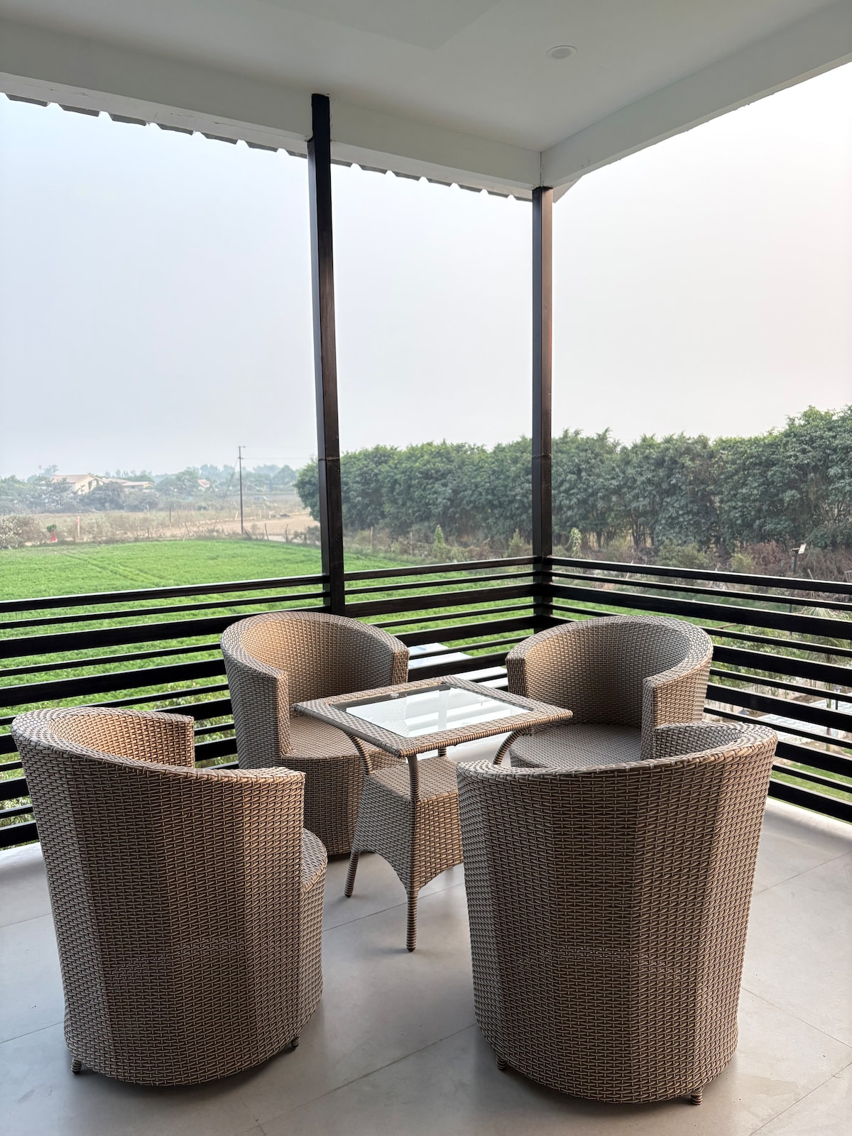 Raj Farm se encuentra en medio de la naturaleza rodeada de edificios de gran altura en Noida. Este lugar le proporciona la comodidad de su propia sala de estar, elegantemente ubicado entre el exuberante jardín verde. Impecablemente reformado en estilo campestre moderno.