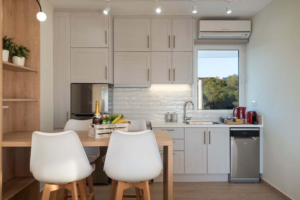Parte del complejo Alectrona Living, Creta. Un nuevo apartamento de lujo justo en el borde de la colina de Platanias, cerca del centro de Platanias, pero lejos de las multitudes y el ruido de la calle principal. La vista es impresionante, el sonido de las olas y los colores de cada puesta de sol recargarán tus pilas y relajarán tu mente. Uno de los aspectos más destacados de alojarse aquí es la piscina comunitaria, que ofrece unas vistas impresionantes del mar Egeo.