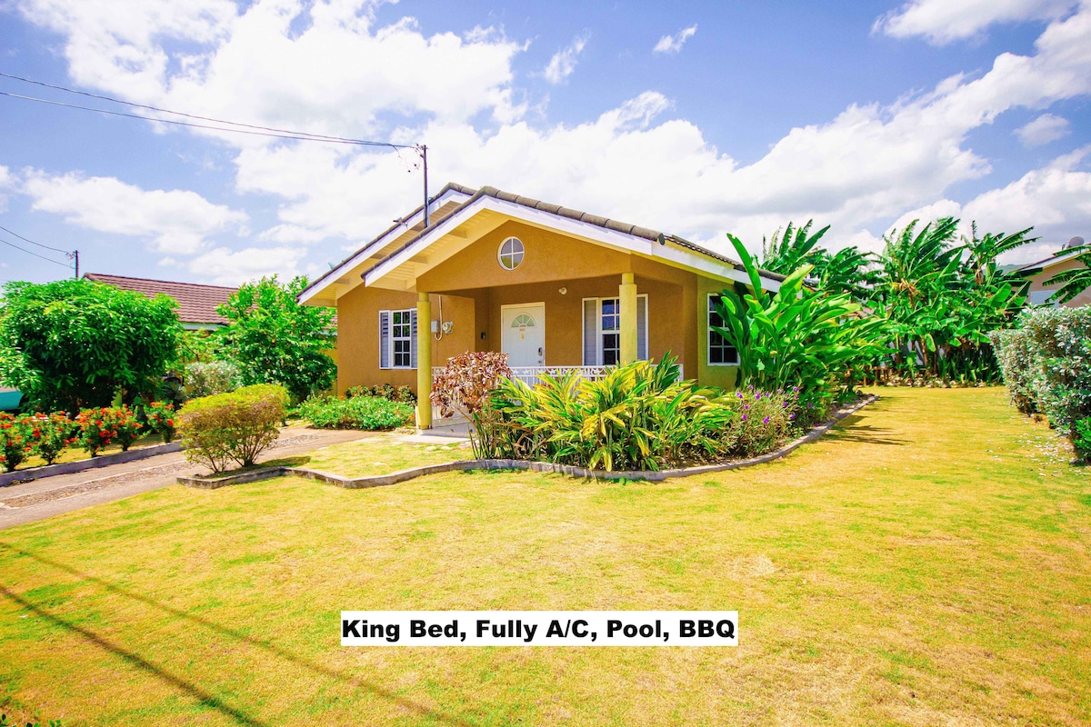 Viajando solo o con otros, esta encantadora casa de campo de 2 dormitorios/2 baños es ideal para las vacaciones, con una ubicación céntrica a 12 minutos de la ciudad de Ocho Ríos y a 8 minutos de Dunns River Fall, Mystic Mountain, etc. Este refugio, apartado del bullicio, ofrece la combinación perfecta de una escapada céntrica y la paz y tranquilidad de una casa de campo. Nuestro lugar feliz para relajarse, reconectarse y renovarse mientras disfruta de la fabulosa oferta de este hermoso destino turístico en Jamaica.