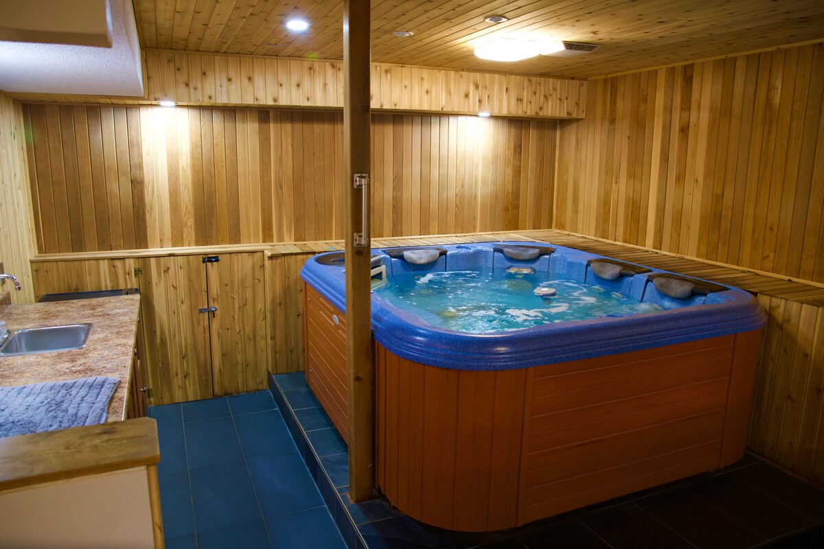 ¡Te damos la bienvenida a Sundance of Blantyre! ¡Retrocede en el tiempo en esta cabaña histórica pero modernizada! Este refugio de 3600 pies cuadrados en el sendero Bruce Trail tiene impresionantes vistas al valle desde tu propia bañera de hidromasaje privada y fogata hasta la bahía georgiana. ¡Te invitamos a disfrutar de nuestra escapada verdaderamente única y tranquila con 6 dormitorios + sauna privada! Con 3 chimeneas, estanque para nadar/pescar, senderismo, esquí de fondo y raquetas de nieve + acceso al sendero para motos de nieve/ ATV en tu puerta, ¡tu aventura te espera!